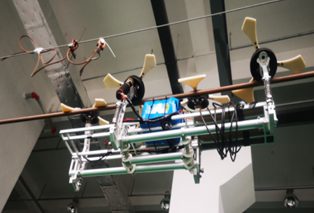 接触网进行连续测量及打磨维护,高精度测并实时传输数据,机器人检测精度0.1mm,打磨精度0.1mm,运行速度为5km/h,自避障运行,接触网全线连续检测。